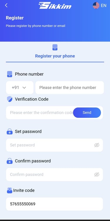 Start your experience by completing the SikkimGame Register process.